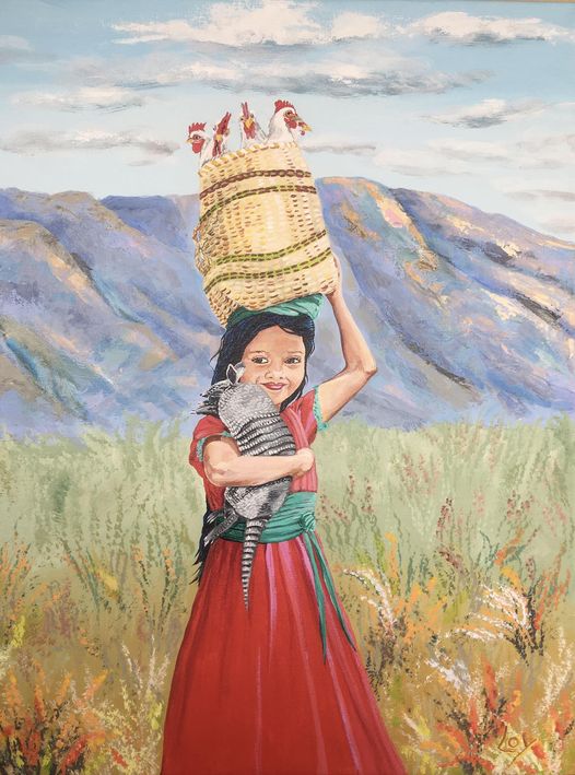 Girl Carrying an Armadillo painting Size: 24″ X 18″ Media: Golden Acrylics on Gallery Wrapped Canvas Contact: sharonloyanderson@gmail.com Price: $900.