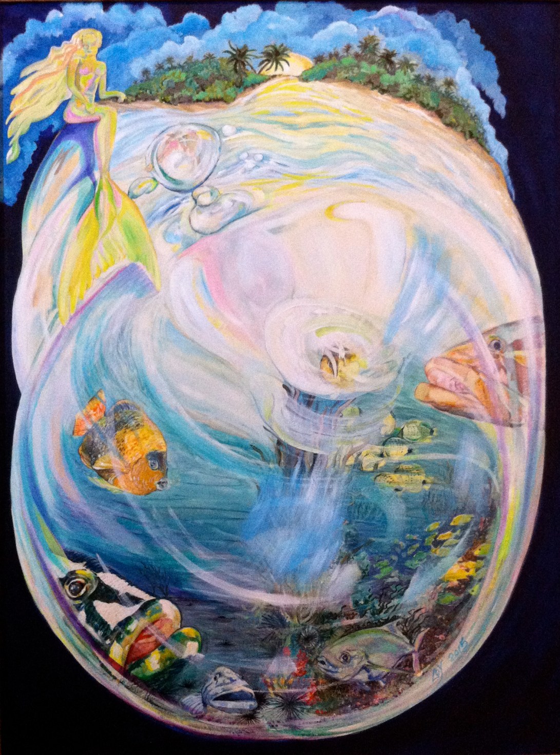 The Mermaid-sold painting Year: 2015 Media: acrylics on canvas Size: 52″ x 40″ Previous exhibits: Art on 12 Gallery and Studios, Solstice Gardens “The Mermaid”